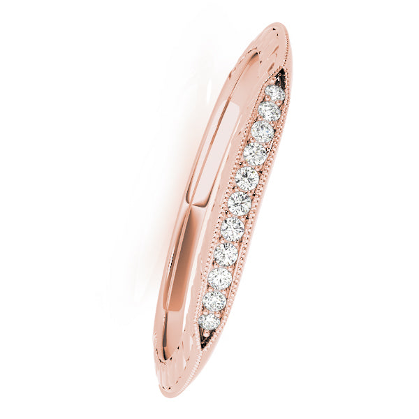 Elegant and timeless, this diamond wedding band is crafted in solid 14K rose, white, and yellow gold, weighing 2.87 grams. The band is adorned with 10 round lab grown diamonds totaling 0.05 carat, each with FG color and VVS1 clarity for remarkable brilliance. Its tri-tone design adds a versatile touch, making it a perfect choice as a wedding ring, anniversary band, or a stacking piece to complement other jewelry.