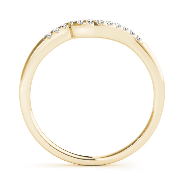 Its curved design hugs engagement rings perfectly, symbolizing harmony and unity — a timeless choice for modern brides. Available in Rose, White, and Yellow Gold, this piece is as versatile as it is stunning.