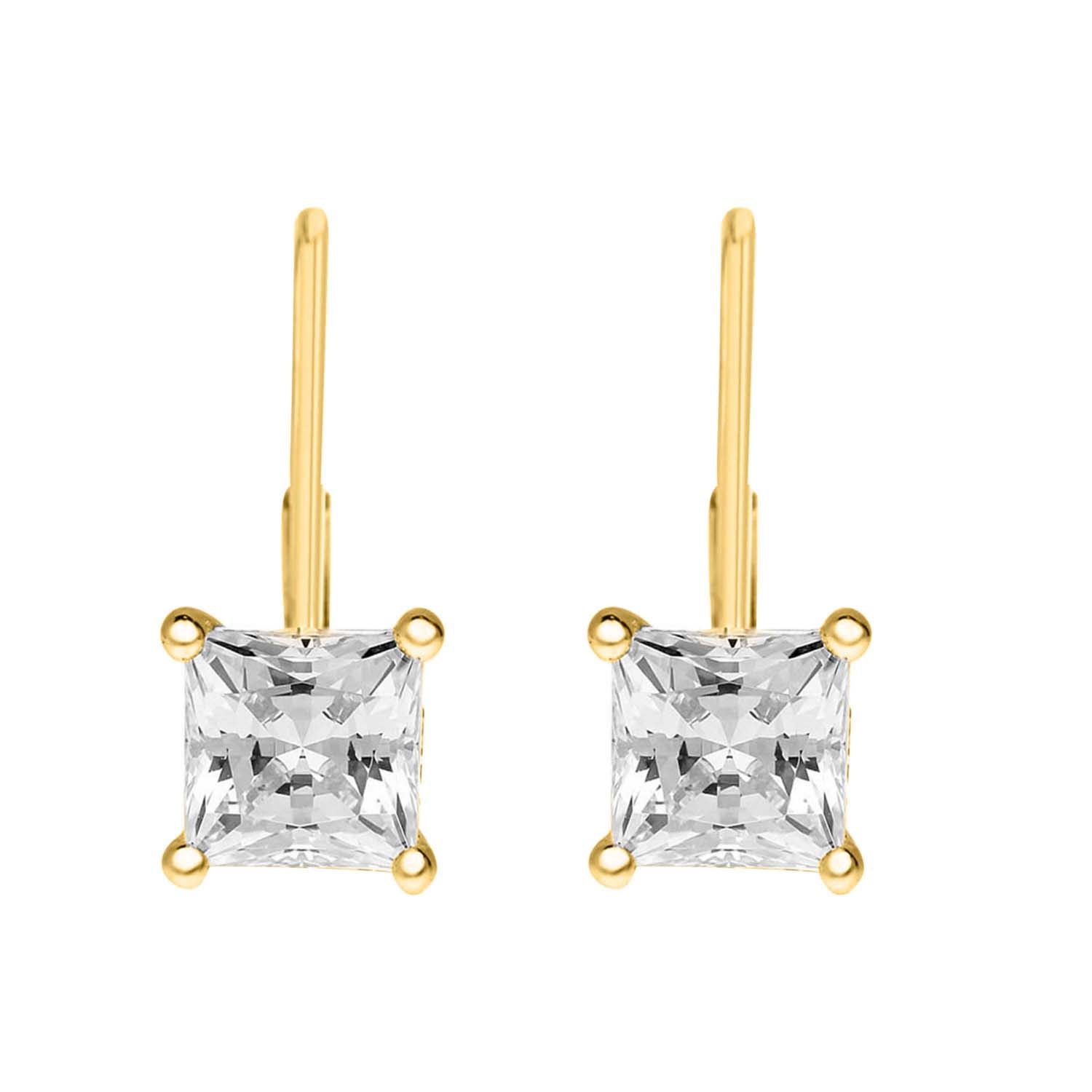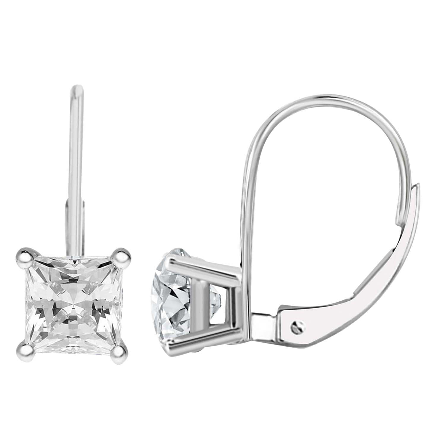 0.20 Ct DF/VS Princess Diamond Leverback Earrings in 14K White/ Yellow Gold