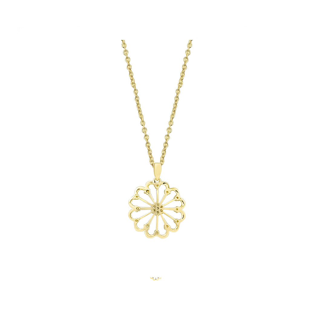 Elegant and radiant, this diamond pendant adds timeless beauty to any jewelry collection. Crafted in solid 14K gold, the pendant is set with 19 sparkling natural round diamonds totaling 0.31 carat. With GH color and SI clarity, the diamonds display excellent brilliance and fire. Suspended from a matching chain, this piece is perfect for both everyday wear and special occasions.