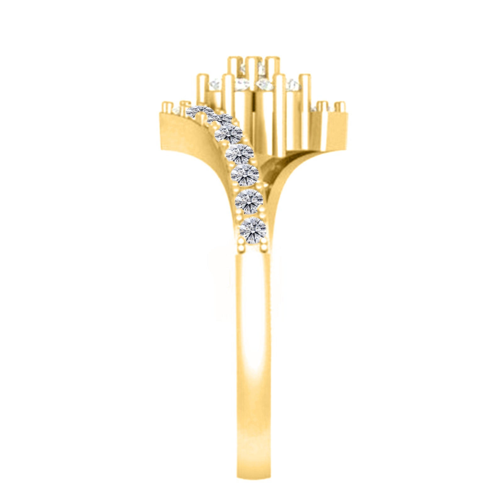 This stunning engagement ring features 1/2 carat of natural diamonds, set in a luxurious 18K solid yellow gold band. With 23 sparkling diamonds, each chosen for their H-I color and I1-I2 clarity, this ring offers a brilliant display of light and elegance, making it the perfect symbol of love and commitment.