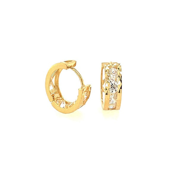 14K Solid Yellow Gold Synthetic Diamond/Gemstone Hoop Earrings for Women