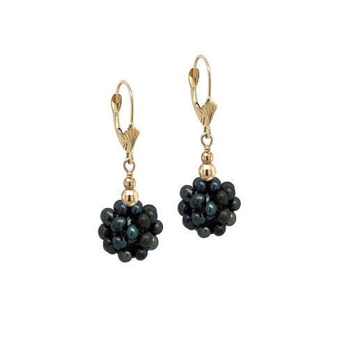 • 14K Yellow Gold Genuine Ball Freshwater Pearl Leverback Earrings