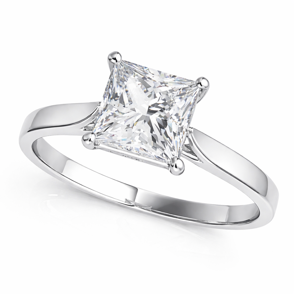 Celebrate timeless elegance with this stunning 0.75 Carat Princess Cut Lab Grown Diamond Solitaire Engagement Ring, expertly crafted in 14K Solid Gold and available in White Gold, Rose Gold, and Yellow Gold. Featuring a brilliant FG Color, VVS1 Clarity diamond, this ring delivers exceptional sparkle, fire, and clarity that rivals natural diamonds. The classic four-prong setting securely holds the princess-cut center stone while allowing maximum light reflection for breathtaking brilliance. With a comfortable and durable 3.00-gram gold weight, this solitaire ring offers the perfect balance of luxury and everyday wearability.
