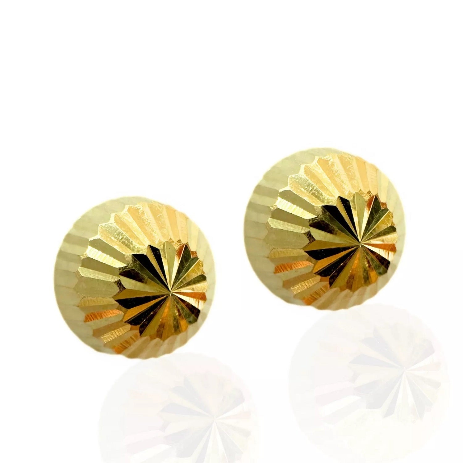 • Stud Earrings 5mm 14k Yellow Gold Half Ball Diamond Cut Push Back Earrings.